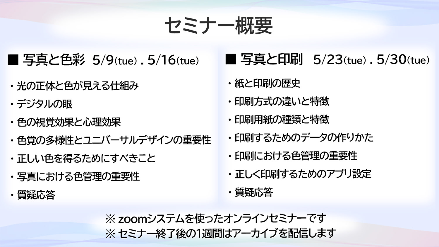 写真と色彩・写真と印刷 セミナー