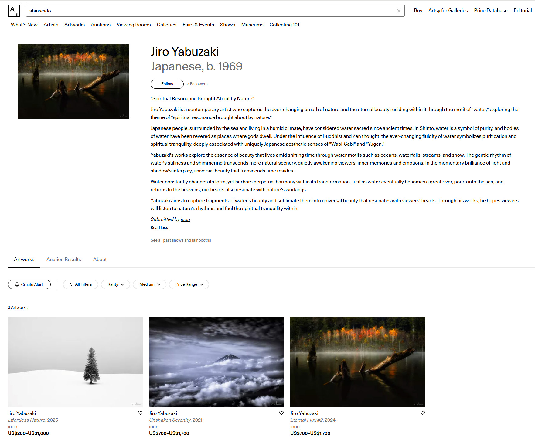 日本人美術家・藪崎次郎は、このたび、米国ニューヨークに本部を置く世界最大級のアート専門EC/オンラインプラットフォーム 「Artsy(アーツィー)」 に正式登録されました。Artsyは、世界中のコレクターや美術関係者が信頼を寄せる国際的なプラットフォームであり、日本人美術家としての新たな挑戦の場となります。